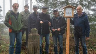 Heimatkundlicher Verein Anger v. li.: Hans Fagerer, Matthias Koch, Hans Kirchner, Bernhard Koch, Silvester Enzinger; 2. v. li. Revierförster Hans Huber