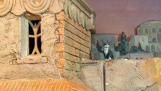 Eine kleine Katze steht immer wieder an verschiedenen Stellen und beobachtet ...