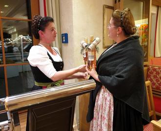 Jugendleiterin Barbara Aicher (links) bedankt sich bei Magdalena Aicher für die Arbeit mit der Zwergerlgruppe.