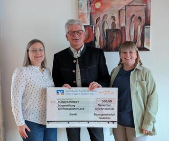 Die Frauengemeinschaft Neukirchen hat im Laufe des vergangenen Jahres durch verschiedene Veranstaltungen Spenden gesammelt, von denen ein Teil nun offiziell an die Bürgerstiftung Berchtesgadener Land übergeben wurden.