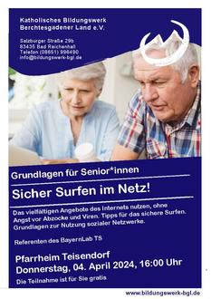 Immer wieder sorgen Meldungen über Datendiebstähle, Schadsoftware und Betrügereien durch fingierte E-Mails für Verunsicherung. Referenten des BayernLab Traunstein informieren am Donnerstag, den 04. April von 16:00 Uhr bis 17:30 Uhr im Pfarrheim Teisendorf darüber, wie man sich schützen kann.