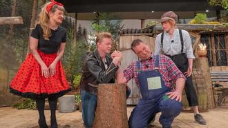 Die Volksbühne Saaldorf stellt das Stück in ein äußerst aufwendig gebautes Bühnenbild: Waldrand mit alter Hütte davor, Bäume und Sträucher, ein wild über die Hütte wucherndes Efeu, auf dem Dach wächst Moos …