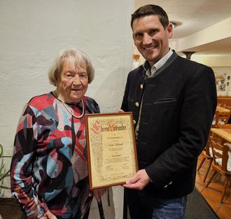 Vorstand Daniel Schader überreichte Luise Schader die Ernennungsurkunde zum Ehrenmitglied