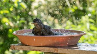 Ein Vogelbad für unsere "Mitbewohner", leicht gebaut und ein Riesenspaß (wenn möglich, das Wasser täglich wechseln!)