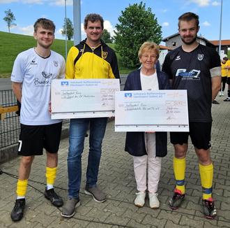 Ein großer Teil des erfreulichen Erlöses aus dieser Aktion wurde für sportliche und soziale Zwecke gespendet. Die 1. und 2. Mannschaft der Fußballer hat einstimmig beschlossen, dass sie 500 Euro dem SV Neukirchen für die Jugendarbeit und 500 Euro einer sozialen Einrichtung in der Region zukommen lassen wollen. Man war sich schnell einig, dass dies die Kinderkrebshilfe Oberteisendorf sein soll. Zum gleichen Termin wie die Siegerehrung am Rande des letzten Heimspiels der Fußballer in dieser Saison fand auch die Spendenübergabe statt. 500 Euro nahm der Jugendleiter des SV Neukirchen Helmut Häusl entgegen und sicherte zu, das Geld gut für den Vereinsnachwuchs zu verwenden. Für die Kinderkrebshilfe nahm die 1. Vorsitzende Rosmarie Baumgartner den Spendencheck entgegen. Sie bedankte sich im Namen des Vereins herzlich für die großzügige Unterstützung. Für sie sei dieser Termin etwas Besonderes, so Baumgartner. Soweit sie sich erinnern kann, sei dies zum ersten Mal, dass sie eine Spende von Fußballern entgegennehmen darf. Sie fügte hinzu: „Wir können diese schlimme Krankheit Krebs zwar nicht heilen, aber mit der Unterstützung der vielen Spender die betroffenen Familien auffangen, damit sie diese schwere Zeit meistern können.“ Die Übergabe der Spenden erfolgte durch die Spielführer der ersten Mannschaft, Jonas Knass und der zweiten Mannschaft, Denis Reiter. Damit wurde nochmal gezeigt, dass es eine Aktion aller Fußballer des SV Neukirchen war. Anwesend waren auch der 1. Vorstand des SV Neukirchen, Daniel Schader und der Abteilungsleiter Fußball, Philipp Schader, die sich mit ihren Vereinkollegen freuten.