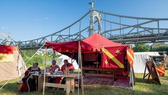„Sehen und Erleben“ – das brachte 2023 das Mittelalterfest erstmals nach Laufen – „Sehen und Erleben“ bringt nach dem großen Erfolg diese Tage vom 28. bis 30. Juni 2024 wieder auf die Salzachwiese an den Ufern des Flusses, zu Füßen der Kirchenmauer und die Mächtigkeit der Salzachbrücke hoch darüber.