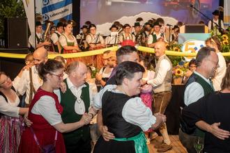 Lob, Ermutigung, ehrliche Wertschätzung für die Arbeit, die in Werkstatt und Verein geleistet wird, Bejahung von Inklusion und dem gelebten Miteinander im Berchtesgadener Land, Dankbarkeit für den wertvollen Dienst an der Gesellschaft - so könnten die vielen gesprochenen Worte zusammengefasst werden. Die Reden wurden umrahmt von der Musikkapelle Piding, die unentwegt und gutgelaunt aufspielte. Ihre Interpretation der Sternpolka war genau die passende Untermalung für den Volkstanz, den die Mitglieder der Tanzgruppe der Werkstatt aufführten. Nach dieser Vorstellung gab es für die Zuseher und manchen Prominenten im zweiten Durchgang die Gelegenheit, die Choreografie mitzutanzen. Ein besonderes Erlebnis für alle Beteiligten. Die Musiker begleiteten später am Abend schmissig die Einlage der Burschen und Dirndl des Trachtenvereins Piding, die für einen schönen Tanz und ihr schneidiges Schuahplattln großen Beifall bekamen.
