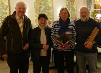 Vorsitzender Günter Schwarz (l.) und Kassiererin Petra Schwarz (2.v.l.) danken Evelyn und Holger Wahl für ihr Engagement.