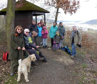 Hochflächen. Ab dem Erreichen der Hangkante folgte die Gruppe einem herrlichen Naturweg mit grandiosen Ausblicken ins Rheintal, diesmal in Richtung des gegenüber liegenden Ortes Osterspai und der Weinlage Bopparder Hamm. Nun stand der Abstieg auf einem schönen Waldpfad an. Einige steile Passagen erforderten Trittsicherheit und die volle Aufmerksamkeit. Sicher im Tal angekommen, blieb noch Zeit für einen kurzen Rundgang durch den schönen Ortskern von Spay mit seinen prächtigen Fachwerkhäusern. Zufrieden trat die Gruppe danach die Heimfahrt mit der Bahn an.