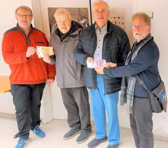 Klingende Noten wurden zu Banknoten. Kuno Herchenbach, Helmut Schuld, Heinz Peter Bell und Wolfgang Feller bei der Spendenübergabe (v.l.).