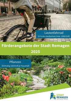 Auch im Jahr 2025 fördert die Stadt Remagen die Anschaffung von Lastenfahrrädern für Familien, Vereine und Unternehmen sowie die Begrünung von privaten Grundstücken. Ziel ist es, eine nachhaltige Mobilität zu fördern und einen Beitrag zu einer artenreichen und noch lebenswerteren Stadt zu leisten. Dafür stellt die Stadt Remagen für beide Bereiche jeweils 10.000 EUR zur Verfügung.