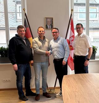 v.l.n.r.: Wehrleiter Remagen Ingo Wolf, Bürgermeister Björn Ingendahl, Bürgermeister Marcel Caspers, Wehrleiter Bad Breisig Ronny Zilligen