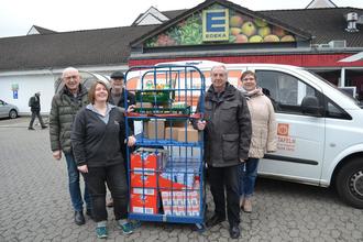REMAGEN. Gleich drei Spendenübergaben im Wert von jeweils 500 Euro vergab die Bürgerstiftung Remagen für die ökumenische „Tafel Ahrweiler“, einmal beim REWE-Markt Jörg Schäfer in Bad Neuenahr-Ahrweiler, beim REWE-Markt Parviz Azhari in Sinzig und beim Edeka-Markt Uwe Fett in Bad Breisig. Den Akteuren war es wichtig, Lebensmittel bei diesen drei Lebensmittelhändlern zu kaufen, da sie die Tafel schon seit vielen Jahren großzügig unterstützen. Beim dritten Termin in Bad Breisig überreichten Professor Dr. Dietrich Holz, Vorstandsvorsitzender der Bürgerstiftung Remagen, und Geschäftsführe Anton Wypior von der Bürgerstiftung Lebensmittel und Hygieneartikel im Wert von 500 Euro an Tafelkoordinatorin Mary Witsch sowie an Otto Fior, ehrenamtlicher Tafelfahrer. Mary Witsch bedankte sich herzlich für die drei Spenden im Gesamtwert von 1.500 Euro und unterstrich die Notwendigkeit dieser Unterstützung: „Die Bürgerstiftung Remagen unterstützt uns immer wieder, herzlichen Dank. Ihre Hilfe ist wichtig, denn es kommen immer mehr Menschen zur Tafel und auch das Profil der Klienten ändert sich. So sind es immer mehr Rentner, die ihre Einkäufe aufgrund der Teuerungen einfach nicht mehr bezahlen können. Auch junge Menschen sind von Armut betroffen. So hilft Ihre Spende auch über 400 Kindern und Jugendliche jener Familien, die zu uns kommen.“ Die haltbaren Lebensmittel - also Milch Thunfisch, Zucker, Mehl, Reis, Nudeln - und Hygieneartikel unterstützen die Klienten der Ausgabestellen Ahrweiler und Sinzig.