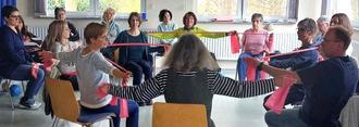 KREIS AHRWEILER / GRAFSCHAFT. Mitte März fand im St. Ursula Haus in Grafschaft Lantershofen eine Schulung zur Bewegungsbegleiterin statt. Leiterin war Trainerin Simone Bopp von der Landesvereinigung ländliche Erwachsenenbildung (LEB). Die zweitägige Schulung wurde von der Landeszentrale für Gesundheitsförderung in Rheinland-Pfalz e.V., kurz LZG, gemeinsam mit den Gemeindeschwesternplus im Kreis Ahrweiler organisiert und bot Ehrenamtlichen eine umfassende Ausbildung, um in der Bewegungsbegleitung tätig zu werden. Jeder erhielt ein Handbuch mit Informationen und Anleitungen für praktische Übungen sowie einen Trolli mit Materialien, darin enthalten ein Schwungtuch, Jonglierbälle, Terra-Bänder und vieles mehr. In der Bewegungsbegleitung gibt es verschiedene Aspekte, Wissen und die Fähigkeiten zu vertieften. In Kooperation vermittelten LZG, den Gemeindeschwesternplus und Simone Bopp ihren breiten Erfahrungsschatz. Die praktischen Übungen und theoretischen Inputs verdeutlichten, wie wichtig Bewegung im Alltag ist.