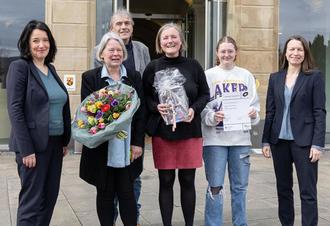 ROLANDSECK. Kürzlich begrüßten Direktorin Dr. Julia Wallner und Landrätin Cornelia Weigand (Landkreis Ahrweiler) mit einem farbenfrohen Blumenstrauß, einem Ausstellungskatalog und einer Ehrenurkunde den einmillionsten Gast im Arp Museum Bahnhof Rolandseck. Hildegard Schumacher aus Bendorf in Rheinland-Pfalz kam mit ihrem Ehemann sowie einer Freundin und deren Tochter, um die erfolgreiche Ausstellung „Maestras. Malerinnen 1500 - 1900“ anzuschauen. Zu der unerwarteten Ehre sagt sie: „Das war eine Riesenüberraschung! Wir sind Wiederholungstäter und waren schon im Oktober letzten Jahres hier. Nun wollten wir die Frauenausstellung gemeinsam anschauen. Ich bin äußerst überrascht, aber sehr angenehm.“