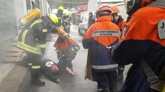 Vom 1. bis 2. April beteiligten sich hieran etwa 20 Mitglieder der Jugendfeuerwehr und zahlreiche Mitglieder der DRK-Jugend. „Mit diesem größer angelegten Übungswochenende soll den Jugendlichen das Berufsleben eines Angehörigen der Berufsfeuerwehr vorgestellt und der Unterschied zu einer Freiwilligen Feuerwehr vorgestellt werden. Ein solches Übungswochenende ermöglicht, Übungen durchzuführen, die ansonsten so kaum umsetzbar wären“, so Jugendfeuerwehrwart Dirk Schorn. An den beiden Tagen gab es 20 verschiedenste Einsätze zu absolvieren. Als größer angelegter „Einsatz“ wurden die Jugendlichen zur Rettung einer verschütteten Person alarmiert. Diese war in einem ausgehobenen Graben bis zu den Knien verschüttet und konnte sich nicht selbst befreien. Die Jugendlichen retteten die Person, indem sie den Sand entfernten und übergaben sie dem Rettungsdienst zur weiteren Betreuung. Alle „Einsätze“ wurden realistisch dargestellt. Hierfür kamen für die Rauchdarstellungen Disconebel und für den Feuerschein Discobeleuchtung zum Einsatz. Auch die anderen Szenarien wurden mit Hilfsmitteln dargestellt, um realitätsnah das Geschehen abzubilden und dennoch jugendgerecht zu sein. Schorn betonte: „Wir wollen den Berufsfeuerwehrtag so realistisch wie möglich veranstalten, dabei jedoch auf die Leistungsfähigkeit der Teilnehmer achten, was nur mit Hilfe viele Helfer möglich ist. Es ist zudem wichtig, mit den anderen Hilfsorganisationen eng zusammenzuarbeiten“. Beim Jugendrotkreuz wurden parallel zu den Übungen der Jugendfeuerwehr weitere eigene Übungen durchgeführt. Das DLRG Remagen übernahm das Schminken der Darsteller und beteiligte sich an den Übungen im Wasserbereich. Ob „Rollstuhlfahrer im Rhein“, brennende Mülltonnen, Tierrettung, abgefahrener Hydrant, Vermisstensuche oder Verkehrsunfall - die Jugend hatte alle Hände voll zu tun. Allen Unterstützern sprachen Dirk Schorn und sein Stellvertreter Yannic Moser großen Dank aus. Der Feuerwehrnachwuchs war an beiden Tagen engagiert dabei und freut sich schon auf den Jugendfeuerwehrtag 2024. Wer mitmachen möchte bei der Jugendfeuerwehr Remagen, kann sich melden bei Dirk Schorn Tel: 0171 / 2660136.