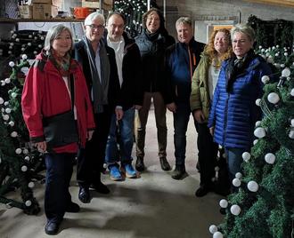 Fototermin im Lager der Weihnachtsbeleuchtung (v. l.): Kerstin Sievert, Gerald Strauss, Volker Geber (alle RMI), Marc Bors, Andreas Göbel, Lisa Althoff (alle Stadt Remagen) und Ruth Doemen (RMI)