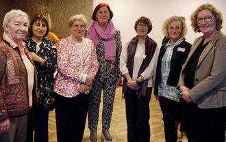 Sie alle berichteten aus der Hospizarbeit: Der Vorstand (v.l.) mit Hildegard Schneider (stellvertretende Vorsitzende) , Monika Lessenich, Berta Anna Bauer, Ulrike Dobrowolny (Vorsitzende), Dr. Liesel Albrecht und Claudia Steinheuer gemeinsam mit Hospizleitung und SAPV-Geschäftsführerin Gabriele Ruggera (r.)