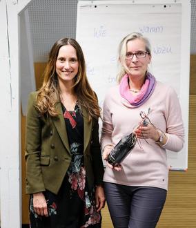 1. Vorsitzende Alexandra Willems mit Referentin Elke M. Raue.