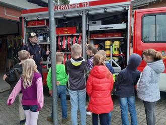 OEDINGEN. Am Montag besuchte der Kindertreff Oedingen gemeinsam mit der Sozialpädagogin Maike Kriechel die örtliche Freiwillige Feuerwehr. Jugendwart Daniel Weber klärte die Kinder über die Entstehungsschichte sowie der Aufgaben (Löschen, Schützen, Retten, Bergen) der Feuerwehr auf. Anschließend wurden die Kinder über das Verbrennungsdreieck in Kenntnis gesetzt und wie verschiedene Stoffe gelöscht werden. Anhand kleiner Experimente zeigte der Jugendfeuerwehrwart, wie schnell Feuer sich entzünden kann und auch der richtige Umgang mit einem Streichholz wurde geübt. Die fünf W-Fragen, die im Falle eines Notrufs zu beachten sind wurden ebenfalls nachgespielt. Anschließend wurden das Mannnschaftsfahrzeug sowie das Tragkraftspritzenfahrzeug - Wasser (TSF-W) unter die Lupe genommen, wie auf dem Bild zu erkennen ist. Die Fotoerlaubnis der Eltern liegt der Jugendpflege Remagen vor. Das Highlight für die Kinder war die Fahrt mit dem Mannschaftsfahrzeug. Diese ging vom Feuerwehrhaus bis zum Kindertreff am Dorfgemeinschaftshaus und zurück. Der Eintritt in die Jugendfeuerwehr Oedingen ist ab 10 Jahren möglich. Neben Teamwork-Maßnahmen und physikalischen und chemischen Experimenten und Grundlagen zur Brandschutzerziehung kommen Spiel, Spaß und Bewegung ebenfalls nicht zu kurz. Wer sich schon mit sechs Jahren für das Hobby Feuerwehr interessiert wird bei der Bambini - Feuerwehr in Remagen spielerisch an das Thema herangebracht. Die Aktionen geschahen im Rahmen der Stadtteilarbeit der Jugendpflege Remagen. Die Kindertreffs finden wöchentlich in den Stadtteilen Oedingen (montags), Oberwinter (dienstags und donnerstags), Bandorf (mittwochs) und Kripp (donnerstags) von 16 bis 18 Uhr statt. Kinder und Jugendliche ab 7 Jahren können sich per E-Mail über info@jugendbahnhof-remagen.de für einzelne Aktionen anmelden. Die Aktionen werden über die sozialen Medien sowie auf der Homepage www.jugendbahnhof-remagen.de beworben.