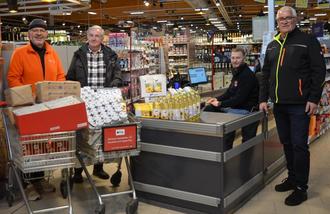 Die Tafelfahrer Dieter Baltes (r.) und Ralf Eggert (l.) bedankten sich bei Marktleiter Daniel Sell (2. v. r.) für die große Spende.