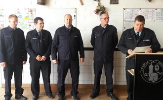 Florian Boes, Tobias Richter, Marco Tanghe, Hans-Jürgen de Jong, Ingo Wolf freuten sich über die Beförderungen (v. l.).