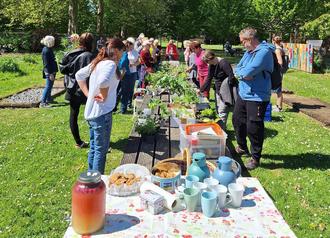 Pflanzenliebhaber und Hobbygärtner kamen bei strahlendem Sonnenschein in den Remagener Stadtgarten, um ihre Gemüsepflanzen, Stauden, Samen, einjährige Sommerblumen und Zimmerpflanzen zu tauschen und zu verschenken. Die Besucherinnen und Besucher staunten über die angebotene Vielfalt. Am Ende hatten fast alle Pflanzen ein neues Zuhause gefunden. Die Gartenfreunde kamen miteinander ins Gespräch und konnten ihre Erfahrungen untereinander teilen und sich austauschen. Für das leibliche Wohl war ebenso gut gesorgt. So gab es neben Kaffee und Kuchen eine selbst angesetzte Limonade, welche großen Anklang gefunden hatte. Der schön gepflegte Kräutergarten wurde von den Besuchern bestaunt und bewundert. Fragen rund um die Kräuter wurden gerne von den ehrenamtlich aktiven „Kräutergartenfreunden“ beantwortet. Eine wichtige Information über die Pflanzen im Garten ist, dass die Pflanzen im Kräutergarten nicht zum Ernten gedacht sind und bitte nicht ausgebuddelt werden sollen. Margot Lembke von dem Freundeskreis Kräutergarten war wieder rundum zufrieden mit der Veranstaltung und freute sich sehr darüber, dass es so viele naturverbundene Bürgerinnen und Bürger in Remagen und Umgebung gibt.