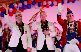 Bevor jedoch die neue Kindertollität im Mittelpunkt stand, galt es, das Dreigestirn der vergangenen Session zu verabschieden. Prinz Quick I. (Ralf Mostert), Bauer Holly (Holger Achenbach) und Jungfrau Marie (Marc Tiltmann) genossen letztmalig den Einmarsch als Trifolium, ehe sie in den karnevalistischen Ruhestand verabschiedet wurden. Beigeordneter Volker Thehos überreichte die Prinzenspange der Stadt Remagen und bedankte sich bei den Dreien für ihr Engagement. Auch der Vorsitzende und Sitzungspräsident des Sportvereins, Marc Göttlicher, dankte den Dreien sowie Hofmarschallin Lisa Sowa mit einem Präsent für ihren Einsatz für den Kripper Karneval.