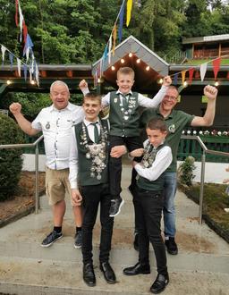 Strahlende Nachwuchsmajestäten: Markus Heck auf den Schultern von Kevin Buchholz (li.) und Kenny Heydecke