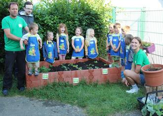 In einem kurzen Vorgespräch erhielten die Kinder wertvolle Tipps und Hinweise rund um die Bepflanzung und Pflege eines Hochbeetes. Dann ging es ausgerüstet mit Schürze und Gießkanne an die Arbeit. Gurke, Salat, Kohlrabi und vieles mehr fanden ihren Platz im Beet. Alle „Mini-Gärtner*innen“ bekamen zum Schluss noch eine Urkunde für ihr fleißiges Helfen. Für die ersten Genüsse, bekamen die Kinder eine kleine Auswahl an verschiedenen Gemüsesorten, die in den Gruppen verzehrt werden können. Der Kindergarten Dankt der EDEKA- Stiftung und dem EDEKA-Markt Rudolphi recht herzlich, und freut sich schon aufs nächste Jahr.