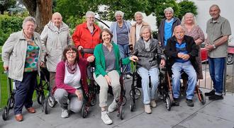 Die rollende Gehhilfe ermöglicht den Nutzerinnen und Nutzern, weiterhin im Alltag beweglich zu bleiben, spazieren oder einkaufen zu gehen. Dafür zeigte Gerlinde Brenk den Teilnehmenden Übungen zur Kräftigung der Beinmuskulatur, ihre Kollegin Ingrid Neubusch erklärte, wie mit der Ankipphilfe eine Stufe überwunden werden kann. Bei einem Parcours mit verschiedenen Bewegungsübungen bewiesen die Teilnehmenden Geschicklichkeit und erhielten im Anschluss ein Handout, das den richtigen Umgang mit dem Gehwagen erklärt. Die Veranstaltung endete bei einem Plausch mit Kaffee, Obst und Keksen.