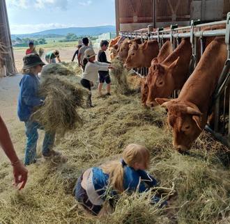 Die Kinder erfuhren einiges über den Anbau, die Ernte und die Lagerung des Futters, die artgerechte Haltung der Kühe, die Aufzucht der Kälber sowie die Vermarktung des Rindfleischs im eigenen Hofladen bzw. in regionalen Supermärkten.