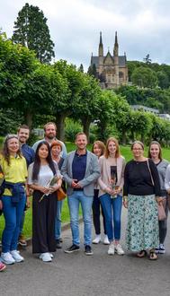 Neun Teilzeit-Auszubildende und Jahrespraktikant*innen der städtischen Kitas Remagen haben ihre Prüfung bestanden. Zu den Gratulanten zählte unter anderem Remagens Bürgermeister Björn Ingendahl (6. v. l.).