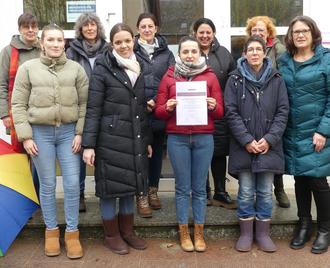Das Erzieherinnenteam freut sich über das neue Gütesiegel: Helga Hoffmann, Angelika Seger, Nadine Schneider, Viktoria Saleh, Ulrike Küpper (hinten v. l.) sowie Maike Göbbel, Lena Pies, Marie Nuppeney, Tatjana Hamacher, Tosca Willhof (vorne v.l.)
