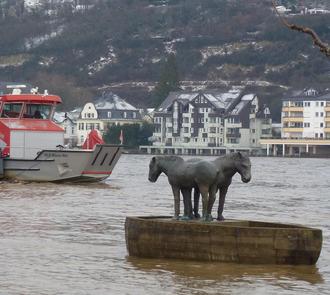 Die Treidelpferde am Kripper Rheinufer hatten zunächst noch trockene Hufe, als Vater Rhein gleich zu Beginn des neuen Jahres aus seinem Bett trat.