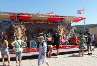Der Duft von gebrannten Mandeln, Popcorn, Reibekuchen, Fischbrötchen und Bratwürsten sorgte für ebenso für Markt-Feeling wie der beliebte kleine Rummel an der Rheinpromenade, der mit seinem neuen Berg- und-Tal-Karussell „Rund um die Manege“ mit bunt blitzenden Fahrzeugen sowie Entenangeln, Luftballon-Pfeil-Bude, Lebkuchenherzen, Schoko-Äpfeln und mehr für gute Laune sorgte. Er hat bis zum kommenden Sonntag geöffnet und lädt unter der Woche nach guter Tradition Kinder auch einmal zu Freifahrten ein.