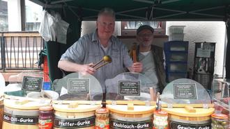 Das bunte Markttreiben machte Appetit; zum Glück konnte man sich mit Flammkuchen, Bratwurst, Fischbrötchen und anderem mehr stärken. Der Duft von Popcorn, Gebrannten Mandeln und Crèpes zog die Freunde von Süßem magisch an. Während es am Spreegurken-Stand mit Sauerkraut und Mettwürsten eher herzhaft zuging.