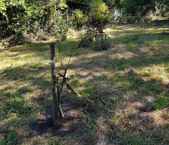 Abgeknickte Obstbäumchen in einem Garten in Unkelbach