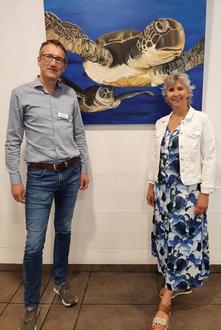 Künstlerin Rita Doll und Tobias Wolframm (v. r.) vor einem der Exponate.
