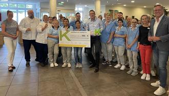 Übergabe des Grünen K im Kreis der Mitarbeiterinnen und Mitarbeiter der Seniorenresidenz Curanum.