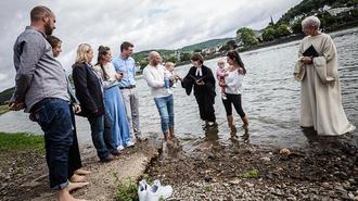 REMAGEN-SINZIG. Am 30. Juli feierte die Evangelische Kirchengemeinde Remagen-Sinzig einen Taufgottesdienst am und im Rhein. Acht Kinder aus Remagen und Sinzig kamen mit ihren Familien und Gästen nach Kripp in die Nähe der Fähre, an eine Stelle, mit ruhigem Wasser.