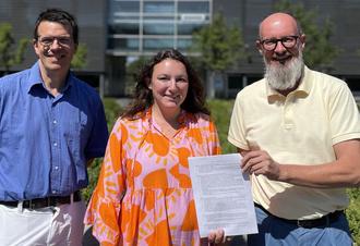 Saskia Morris verstärkt das Team Sprachen / Internationales am Campus Remagen der Hochschule Koblenz, hier mit Andreas Faulstich M.A. und Dr. Laurent Borgmann