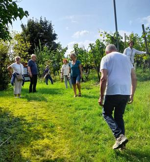 „Gehen Sie doch einfach die Straße am Wasserturm runter zum Badenacker, wenden sich nach rechts und laufen die paar Schritte bis zum Sanddornbaum. Da steh‘ ich dann“ So lautete die Wegbeschreiben von Frank Krajewski, der uns das Tor zu einer Besichtigung seines Gartens öffnete. Wir, das sind die Gartenenthusiasten, die im Stadtpark Remagen seit knapp einem Jahr „Jemös“ pflanzen und ernten. Und ja, wir lieben den Austausch mit Menschen, die ungeduldig und dann jubelnd das erste zarte Grün ihres Radieschens begrüßen und schneckenzerrupften Pflänzchen quasi schulterklopfend ein „du schaffst das“ zuflüstern. Wir hatten also das OK von Herrn Krajewski seinen Garten kennenzulernen. Das Tor öffnete sich zu einer – wie soll man es treffend beschreiben? - Wein-, Gemüse- Obst-Raritäten-Landschaft. Ein Refugium für seltene Pflanzen und verschollen geglaubte, vormals in der Region geschätzte Weinreben. Wie in einem weiten Haus durchwanderten wir Räume, die der Architekt mit sorgsam lockerer Hand gestaltet hat. In der Eingangshalle konnten wir von den ersten reifen Weintrauben kosten und weiter, hier mal ein Blättchen abzupfen, dort vom Strauch die fruchtige Schärfe eines Sezuan-Pfefferkörnchens schmecken. Alte Ziegel, die vormals in Kripp gebrannt wurden, geben dem Garten einen Rahmen, bevölkert, versteht sich. Mit kleinen Anekdoten lenkte Frank Krajewski unsere Aufmerksamkeit durch sein Biotop. Ein herzliches Dankeschön gilt unserem Gastgeber und wir hoffen auf ein ordentliches Pilzwetter. Auf ein Wiedersehen im Oktober. Sollte sich Ihr noch verborgenes Gartengen regen, melden Sie sich doch einfach bei Steffi Ehlert, unserer Ehrenamtsbeauftragten der Stadt (stefanie.ehlert@remagen.de 02642-20163). Sie sind herzlich willkommen. Komm‘ mach mit!