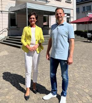 Landtagsabgeordnete Petra Schneider im Gespräch mit dem Remagener Bürgermeister Björn Ingendahl