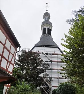 Noch ist die Evangelische Kirche in Oberwinter eingerüstet.