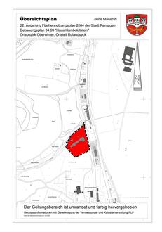Der Entwurf des Bebauungsplans, bestehend aus der Planzeichnung, dem Vorhabenplan, der Vorhabenbeschreibung und dem Textteil, wird im vorgenannten Zeitraum zusammen mit der Begründung, einem Fachbeitrag zum Artenschutz, einer FFH-Vorprüfung, landschaftspflegerischen Bestandsplänen sowie den nach Einschätzung der Stadt wesentlichen, bereits vorliegenden umweltbezogenen Stellungnahmen auf der Internetseite der Stadt Remagen veröffentlicht (www.remagen.de => „Rathaus Bürgerservice“ => „Stadtentwicklung, Bauen, Wohnen“ => „Beteiligungsverfahren“). Diese Unterlagen sind auch über das landeseinheitliche Portal (geoportal.rlp.de) zugänglich.