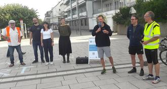 Die Bürgermeister Björn Ingendahl und Marcel Caspers, Beigeordneter Roland Janik und die Klimaschutzbeauftragten begrüßen zum Anradeln