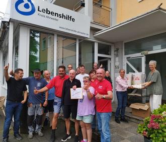 KREIS AHRWEILER. Erneut kamen die Helferinnen und Helfer der Gemeinde Geckenau zur Spendenübergabe für die Lebenshilfe im Kreis Ahrweiler. Die Freude bei den Bewohnerinnen und Bewohnern der Lebenshilfe im Düsseldorfer Hof in Rolandseck war groß, schließlich kennt man sich schon von früheren Spendenübergaben.Wie immer leitete Wolfgang Grom den Transport. Begrüßt wurden die Helfer vom Vorsitzenden der Lebenshilfe, Ulrich van Bebber. Mit dabei war diesmal auch Thomas Habermann, Landrat des unterfränkischen Landkreises Rhön-Grabfeld, in dem die Gemeinde Geckenau liegt. „Ich möchte mir selbst ein Bild über das Ausmaß des Hochwassers 2021 und den Stand der Wiederaufbaumaßnahmen machen, mit Betroffenen sprechen und natürlich auch selbst mit anpacken“, erklärte Habermann.