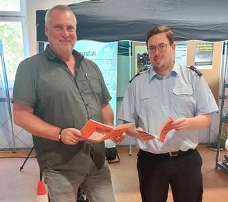 Ortsvorsteher Egmond Eich und Einheitsleiter Daniel Briese beim Infotag in Unkelbach