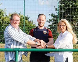 Sponsoringbeauftragter Jan Schäfer (Mitte) begrüßt Sabine und Sigi Wölfl vom Fitness- und Gesundheitszentrum Mittelrhein als neuen Sponsoringpartner beim SV Kripp.